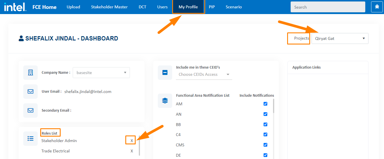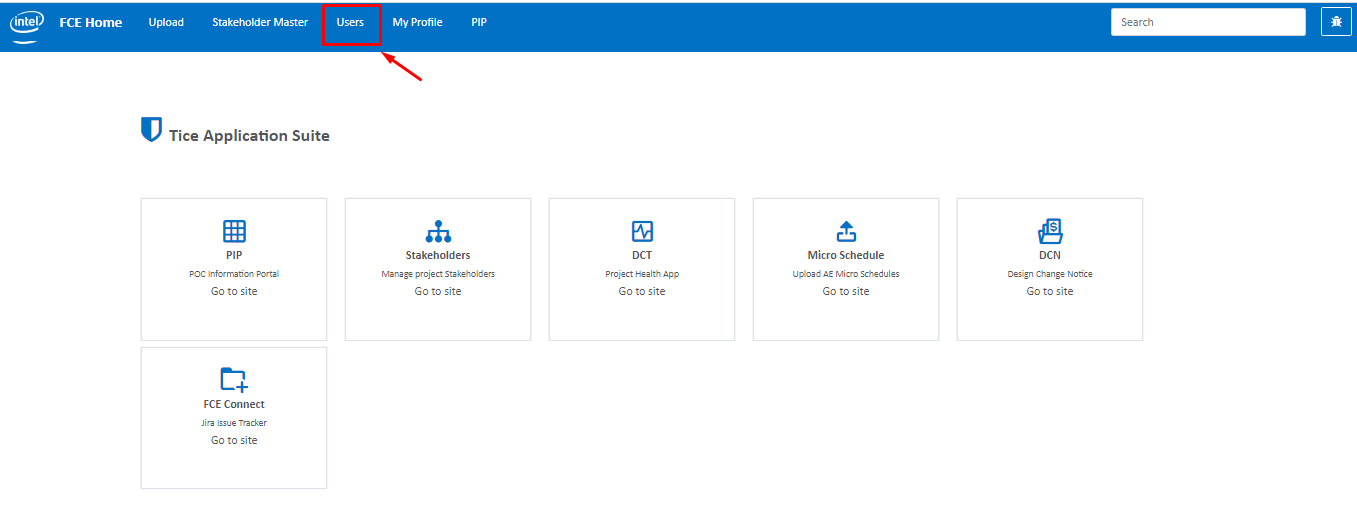 In Fcehome.intel.com, Users Module provides a list of all the users, ability to add new users, update existing users and manage their roles within the projects. As per the appropriate roles within the projects, user can get access to view, create or update ROD/DAC/SDD in Jira Application.