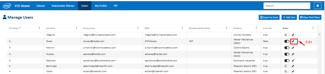 3. Next, click on pencil icon to edit user details and roles.