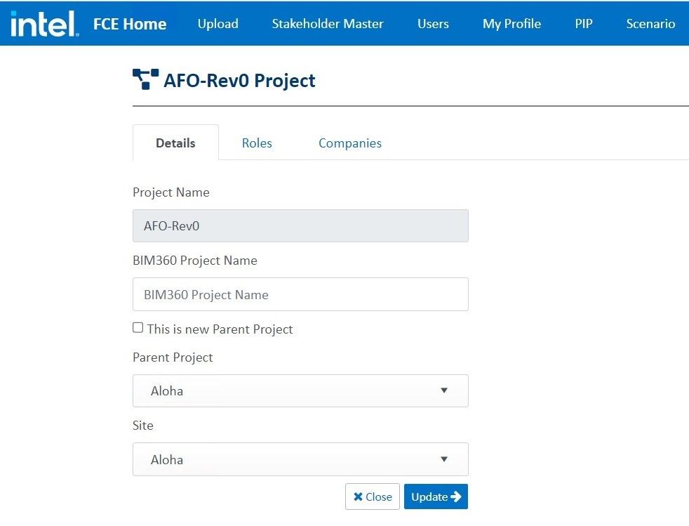 Clicking the edit icon, opens an edit details page. You can update the project details, assigned roles, and assigned companies from here.