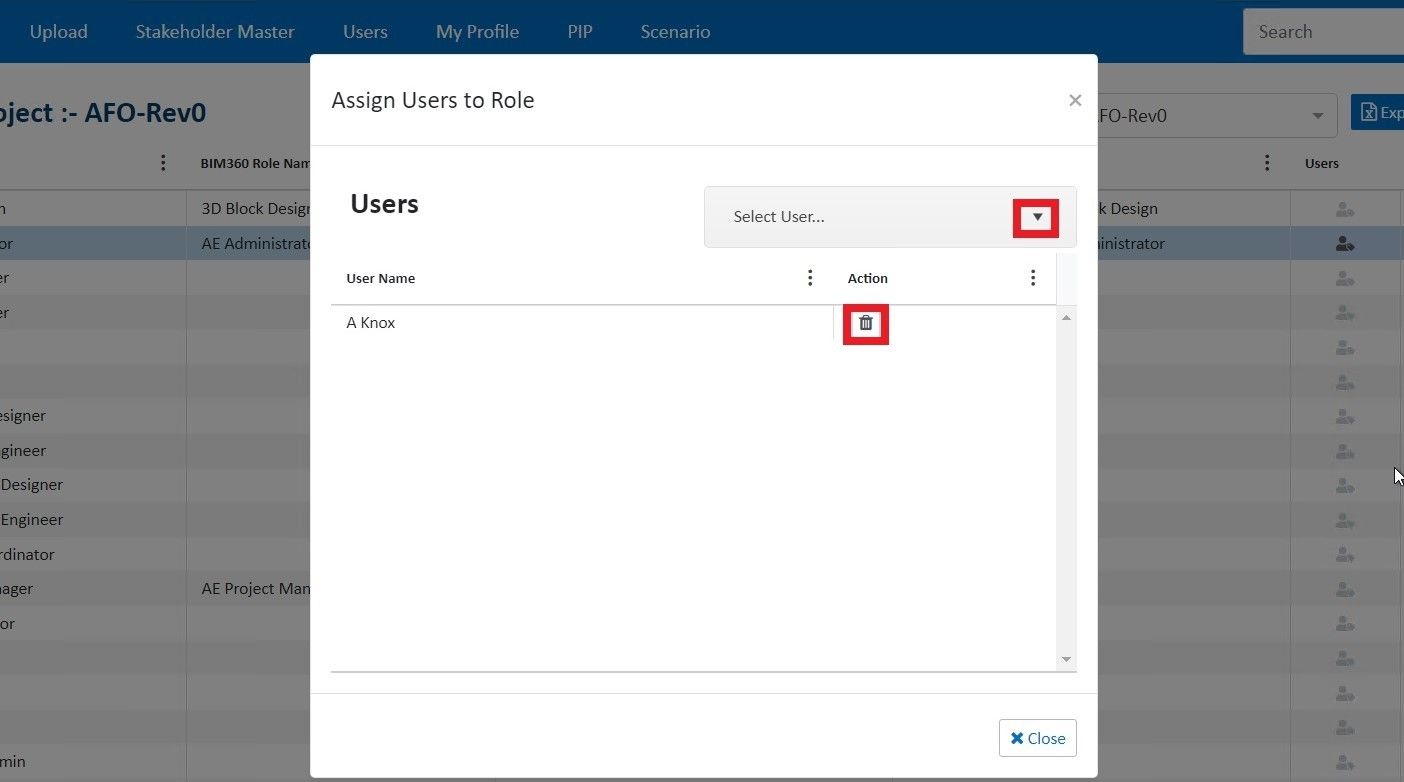 Upon clicking the User List icon, a new page to Assign Users to Role appears. You can select the users from the drop-down list to add to a role here. It also has the functionality to delete a specific user.