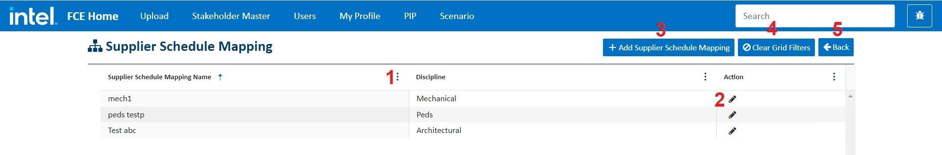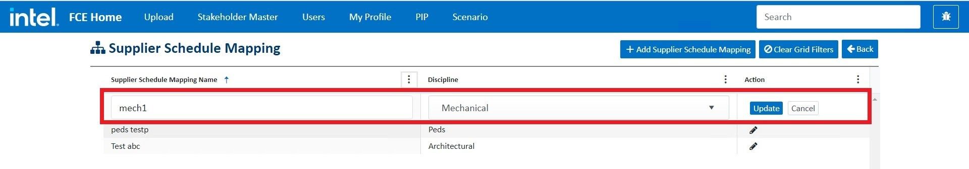 in the company grid and it redirects to a new page of supplier schedule mapping. Supplier schedule mapping describes what type of work the company is doing for the project i.e discipline in which the company is working.