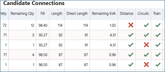 Flash: Gap analysis report | In a previous release we had to remove the check marks/red Xs from the report due to performance issues. They have now been restored to the report to indicate if a candidate connection meets the requirements of Distance, Circuits and Train.![]() |