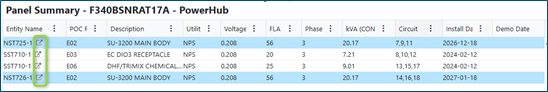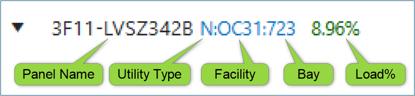 Panel Tree: Utility type & Facility displayed in the tree | When a panel is listed in the tree, the utility type abbreviation (“C”, “E” or “N”) and the facility name are now displayed after the panel name. So, the format is now: PanelName Utility:Facility:Bay Load% ![]() |