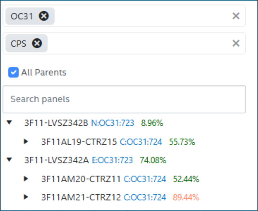 Panel Tree: Utility Type filter | There are two new filters on the Panel Tree Utility type: There is a new utility type filter below the facility filter. By default, it will have all 3 utility types (“CPS”, “EPS” & “NPS”) selected. The user can choose to filter to just one or two of the utility types. All Parents: When the panels in the tree are filtered by facility or utility type the user can use the “All Parents” checkbox to also include parents of the panels in the grid even though those parents do not match the filters. This is useful when, for example, the substation of a panel is in a different facility to the panel, or you have filtered to CPS panels, but the substation is of a different utility type. In the image below, the utility filter is for CPS panels and the “All Parents” checkbox is checked so you can see the non-CPS parents of CPS panels. ![]() |